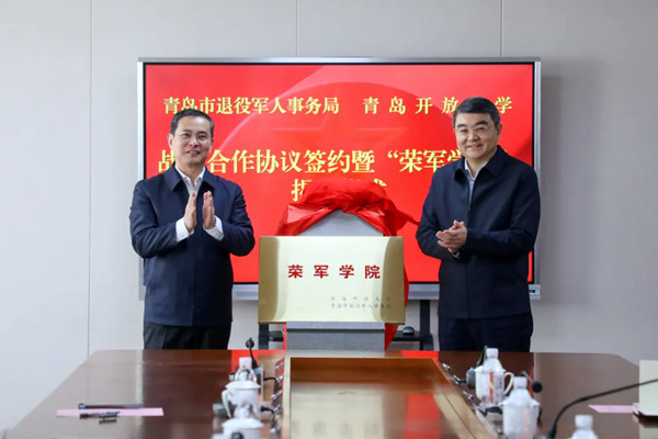 3月7日,青岛开放大学与青岛市退役军人事务局举行战略合作签约暨“荣军学院”揭牌仪式,携手打造现役退役军人学历提升、技能培训